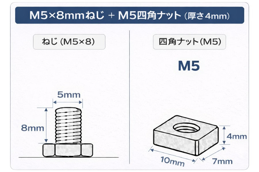 バッテリーターミナルボルト・ナットセット M5×8mm 四角ナット 2個入り