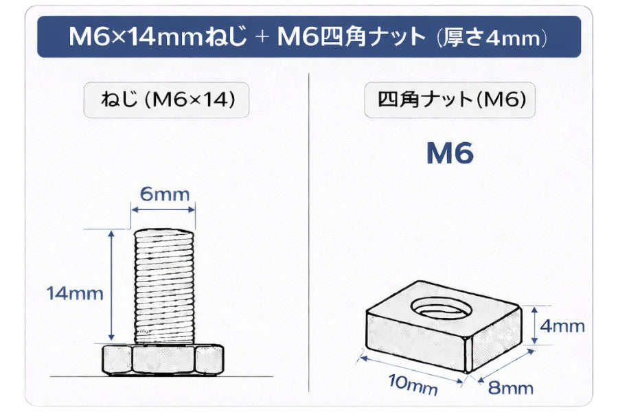 バッテリーターミナルボルト・ナットセット M6×14mm 四角ナット 2個入り